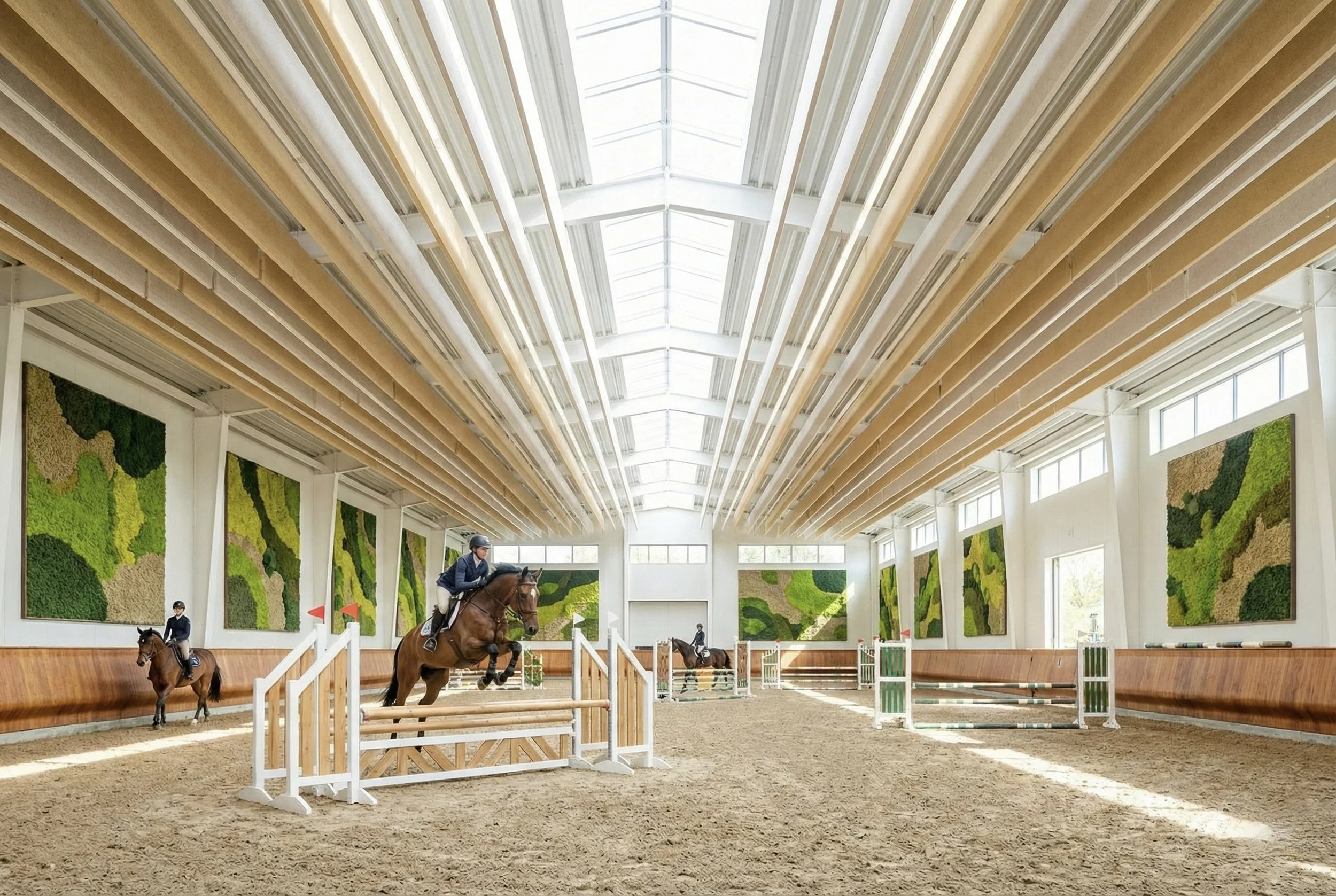By transforming your stable into a buffer against the stressors of a busy barn, we create a serene atmosphere that honors your horse’s natural rhythms, inviting the peacefulness and restorative rest essential for well-being. These improvements are also available in the arena, where a focused environment aids in subtle communication and peak athletic expression. We create environments which allows the equine athlete to remain mentally settled, even during the most demanding training sessions.